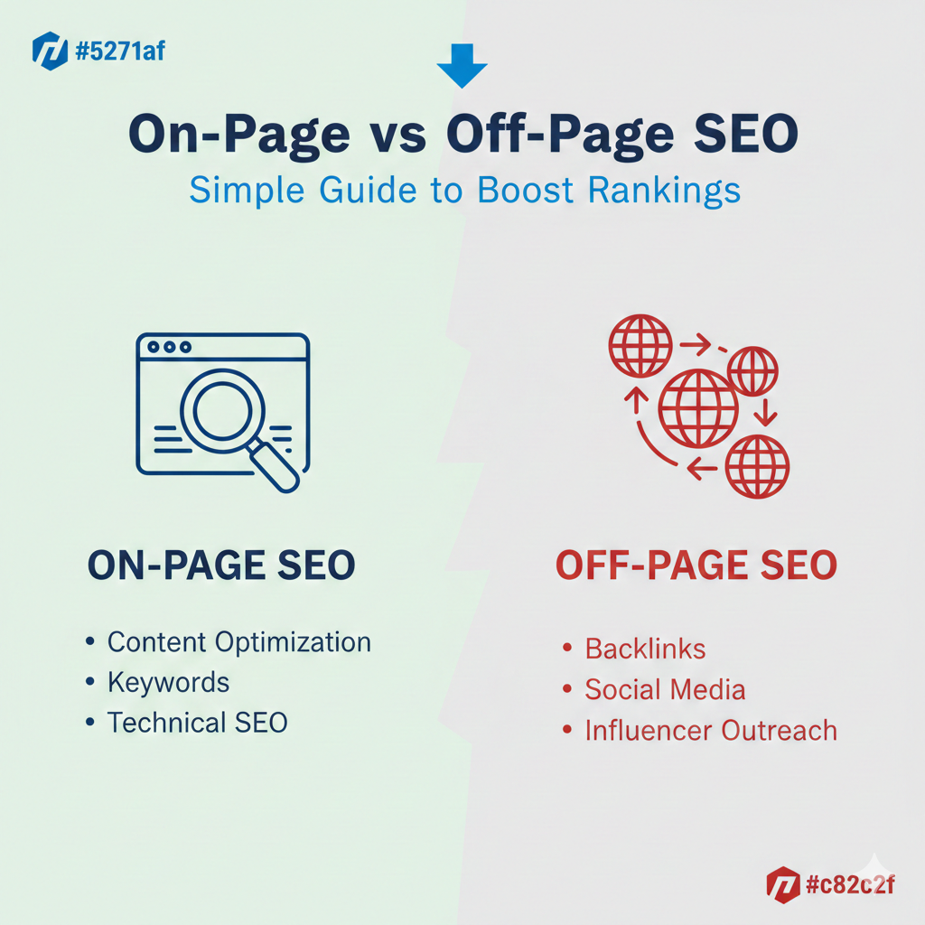 Search Engine Optimization (SEO) is one of the most important factors behind ranking a website on Google. But SEO is not a single task — it’s a combination of multiple strategies that help search engines understand, trust, and rank your website correctly. That’s why SEO is broadly divided into on-page SEO and off-page SEO.